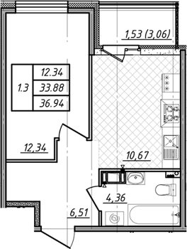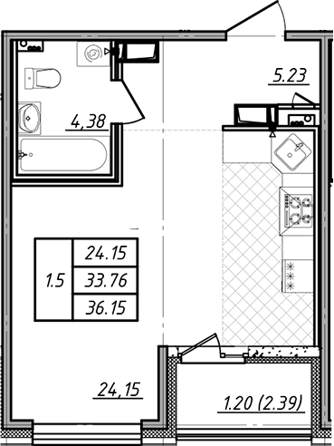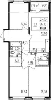 Площадь от 35.44 м2