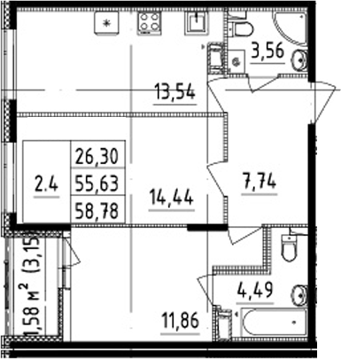 2-к.кв и 3Е-к.кв
