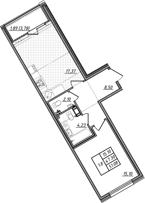 Площадь от 50.44 м2