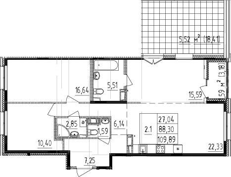 Площадь от 30.27 м2