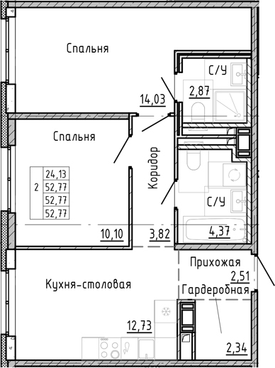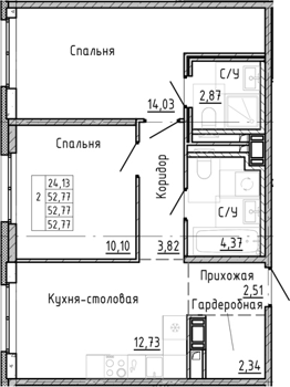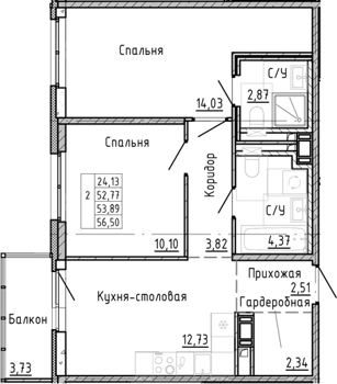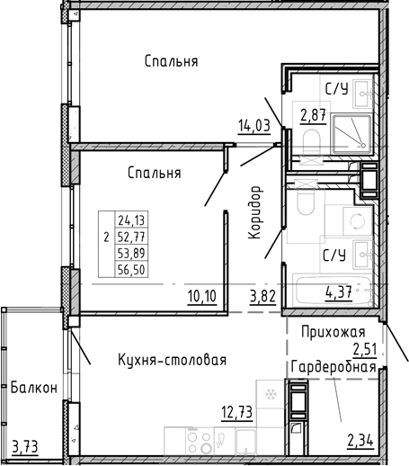 Площадь от 64.37 м2