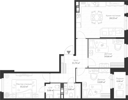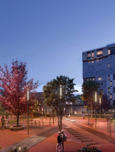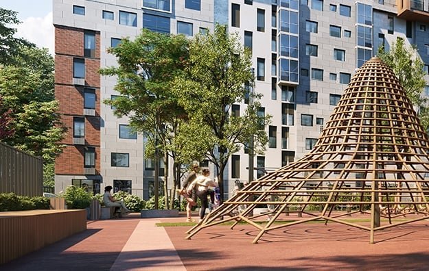 Ландшафтные дизайнеры создали концепцию озеленения территории с деревьями и кустарниками разных пород так, чтобы каждый сезон ваш двор вас радовал. Площадки для игр и отдыха специально спроектированы таким образом, чтобы органично вписываться в ландшафт.