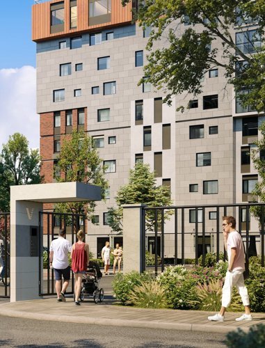 Комплексная застройка на территории 1,3 га, высотой в 10 этажей. Фасад облицован кирпичом светлого и темного оттенков. В корпусах выполнена дизайнерская отделка, расположены колясочные и кладовые помещения.