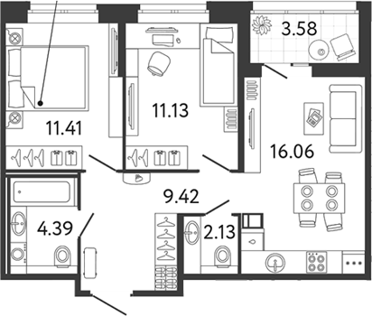 Площадь от 56.04 м2