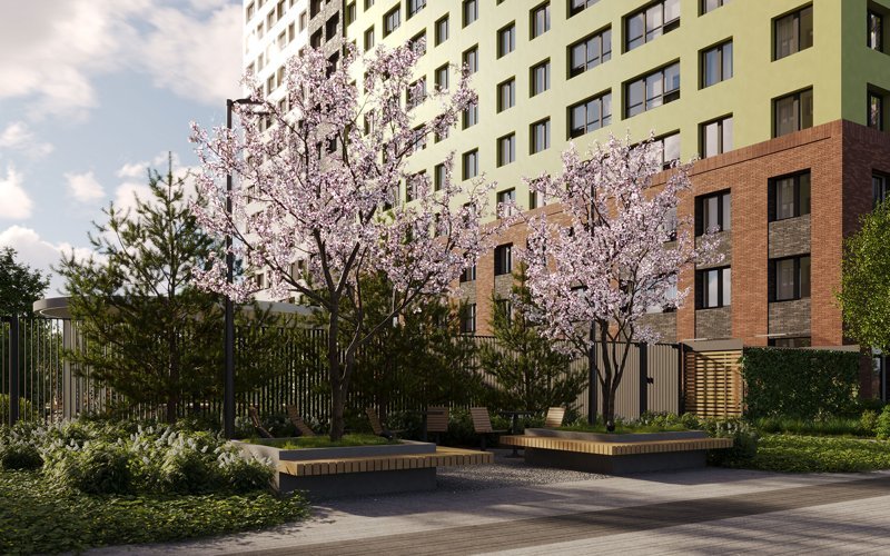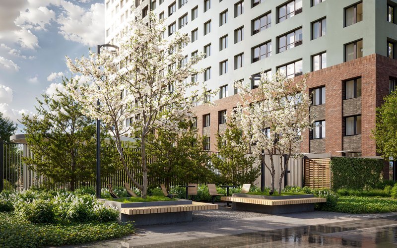 Жилые кварталы с садами, зелёными аллеями и уникальными детскими площадками во дворах.